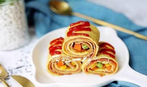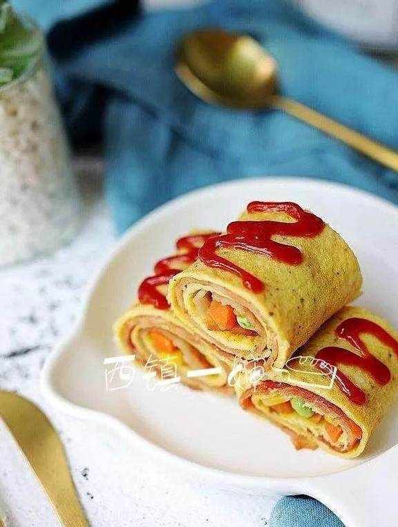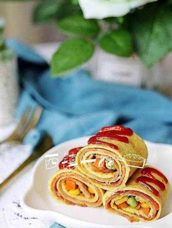 宝宝们喜欢的培根什锦鸡蛋卷来了。