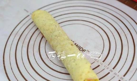 13、然后切成比较厚的卷就可以了。蔬菜粒切的时候容易掉,注意一下。
