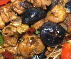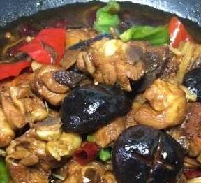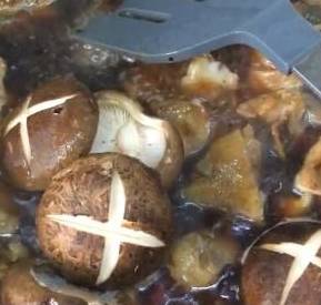 炒香之后加入老抽调色,再加入蚝油,再加上一些香菇等配菜反超几下,加入清水,没过食物。盖上盖子,中火烧开之后,转小火慢炖,炖三四十分钟就可以了。
