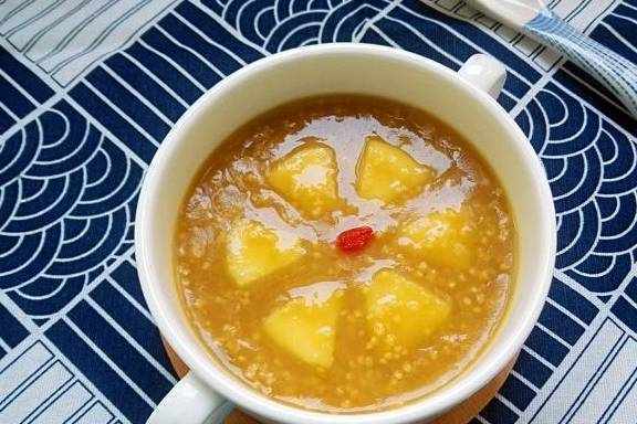 它就是小米,很多时候,胃不好的人都会想到通过喝小米粥来养胃,如果把苹果跟小米一起煮粥的话,会有很好的开胃,暖胃养胃的作用,有助于消化,起到养胃护胃的作用。而且,用苹果加上小米一起煮粥,其中含有丰富的维生素跟蛋白质,经常喝点,还有助于淡化皱纹,进而减少色素的沉着,或许显得年轻些。