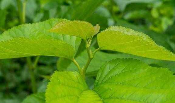 桑叶要吃最嫩的嫩芽部分,桑叶中含有很丰富的氨基酸,维生素和纤维素,有益肝明目,疏风散热的功效。用开水焯过后可以凉拌,裹上面粉干炸,也可以做桑叶馒头、桑叶面条。