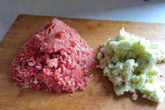 5、我家的肉一般都是用刀切碎的,总觉得绞碎的肉就没嚼劲了,看看我丈夫的刀工哈,切碎的肉比绞碎的肉更均匀齐整,丈夫说他就是我的全自动绞肉机,想要多大的肉粒就能切成多大的肉粒,哈哈。