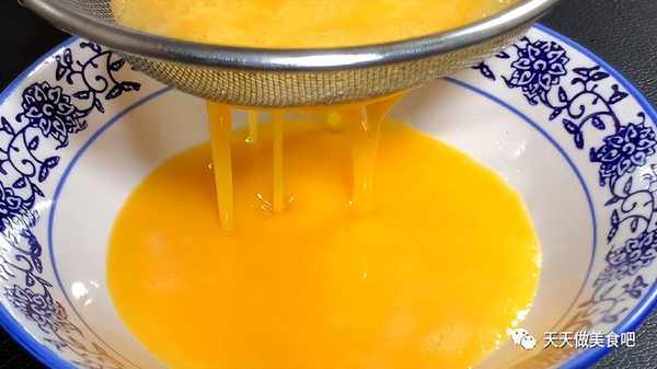 1.碗中打入3个鸡蛋,再加入少许食盐、用勺子搅拌均匀,搅拌均匀后将鸡蛋液倒进漏勺里面,过滤一下的话。