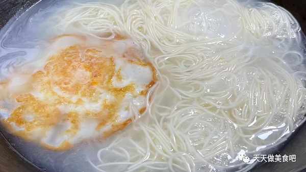 3.将鸡蛋煎至两面金黄,倒入适量的清水,大火烧开,下入面条,用勺子搅拌均匀,锅中的水再次烧开后,加入一遍凉水,大约再煮三分钟左右。