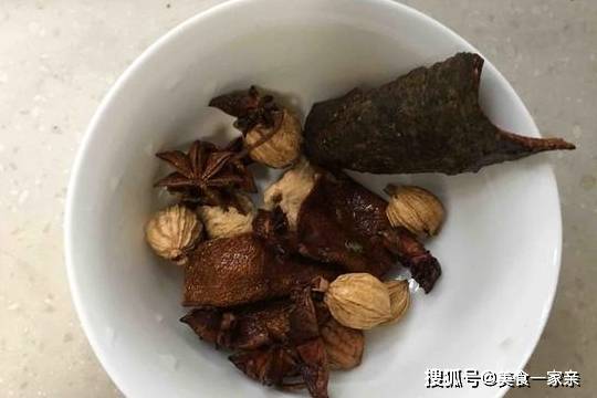 12.准备适量砂仁、五香、八角、桂皮等五香大料,用纱布包裹起来。