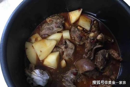 11.倒入适量水,水刚好淹过羊排土豆为准,不宜过多。