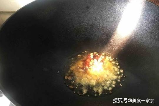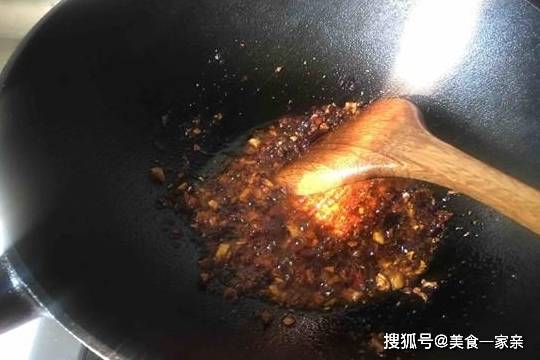 5.洗锅干净后加热炒锅,倒入菜籽油烧热。小火倒入蒜姜粒炒香。