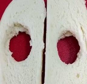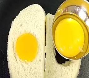 把冷馒头切成厚片,再在其中玩一个洞,能够放进去鸡蛋就行了。