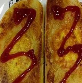 煎至蛋液凝固,即可出锅。在吃的时候,可以加入自己喜欢的酱,本来想加沙拉酱的,可是发现没有了,剩了一些番茄酱,加一点酱比较好看,而且也更有味道。如果觉得平时做饭比较满烦,或者是想吃个什么小吃的话,这肯定是不二的选择哦,保证大家满意,喜欢就试一下吧