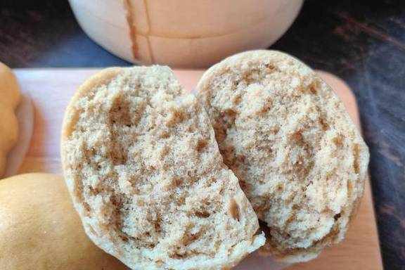 5、馒头掰开一个看看,很松软,入口咀嚼略带一点甜味。