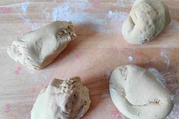 1、单独用苦荞粉做了馒头,面粉加水揉成光滑的面团,揪成4个面剂子。