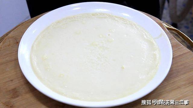 3.然后拿一个盘子,倒入搅匀的豆汁,再盖上一层保鲜膜,要用加热无毒的保鲜膜,用牙签在保鲜膜上面扎上若干个小孔,这一步的目的是使做出来的豆腐光滑平整。