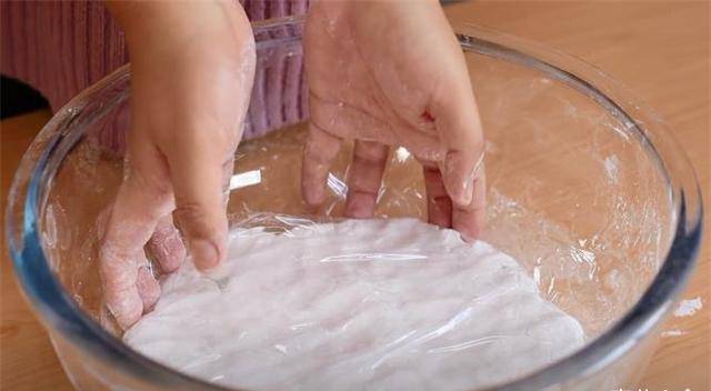 1.500g的糯米粉,我们直接用350g的开水烫面。烫一下不仅会更粘手,而且包的时候会非常顺滑。粘豆包子面一定要双手捏的匀称。状态,然后密封两个小时。