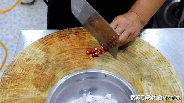 洋葱半个,切成洋葱粒放在盆里,小米椒两个,切成辣椒圈和洋葱放在一起。