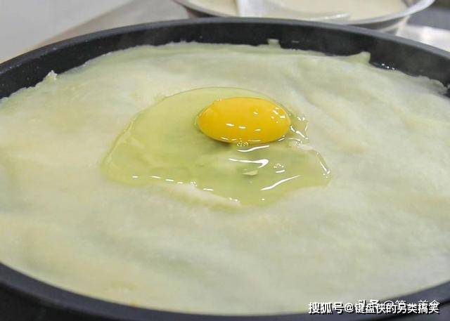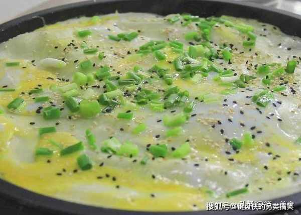 蛋液均匀地淋在上面,再盖上锅盖烙1分钟