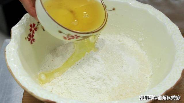 用手搅拌开以后, 加入30度温水40克,用手揉成面团 ,用来做油皮 ,和好以后松驰10分钟 松驰好的面团更容易整形。