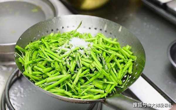 一道酸辣开胃、清脆爽口的爆炒空心菜就做好了。