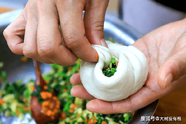 包好以后,把上面多余的面剂揪掉。然后放在案板上面轻轻按压成薄饼,千万不要用擀面杖,一定要用按压的方法,这样才不会跑馅。
