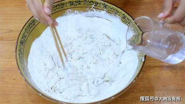 先用筷子搅成面絮,淋入一点植物油。