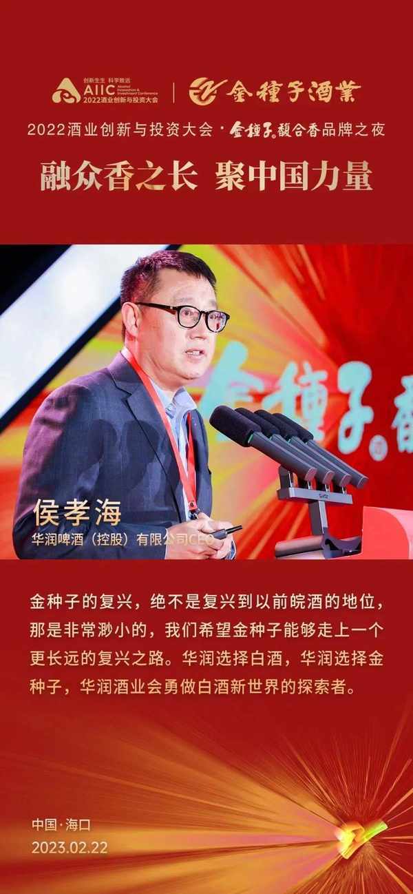 “金种子酒的复兴,绝不只是复兴到以前皖酒的地位,我们希望金种子酒能够走上一个更长远的复兴之路,华润选择白酒,华润选择金种子酒,华润酒业会勇做白酒新世界的探索者。”华润啤酒(控股)有限公司CEO侯孝海表示。