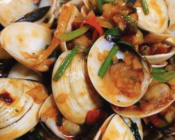 用料姜6片;蒜(圆形的)1个;小辣椒3个;香菜2根;豆瓣酱小半勺(勺出带点红油);蚝油2勺;泰式甜辣酱1勺;盐20克(泡水和焯水用,炒的时候不需要放);花生油35克;花甲(这里用的是白贝)1斤做法
