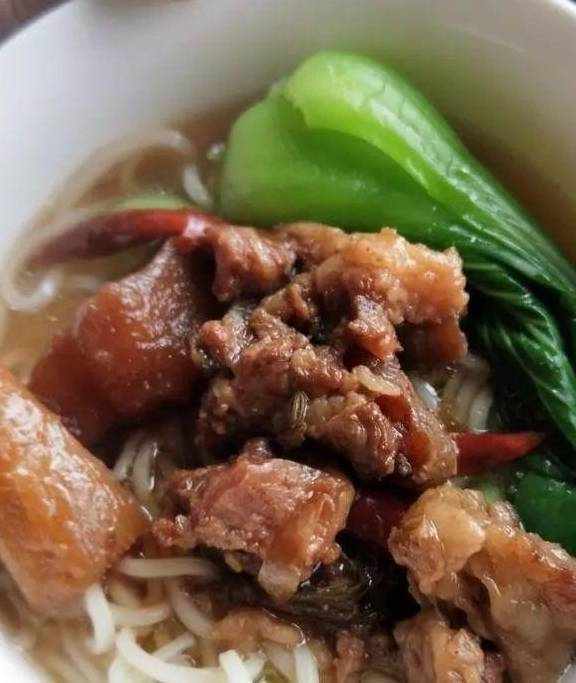 买的筋头巴脑味道更好一些冷水下锅焯水水开后一块一块夹出来这样牛肉上不会带浮沫另起锅我用的砂锅放牛肉和盖过牛肉的热水放各种调料:现成的炖牛肉包一小包适量盐葱姜带皮的三瓣蒜干辣椒3个甜面酱可以多放一些适量生抽老抽调色就可以了(这些量大家自己看着来就行没有必须非得多少)甜面酱是重点画出来要考大锅烧开转中火炖一个半小时尝尝咸淡不够再放盐炖半个小时或放点白萝卜块什么的想吃什么就可以放进去炖半个小时就可以了超级好吃不次于外面的香辣牛肉面真的下面条面条快熟下青菜煮好捞出添一些煮面的水加适量牛肉卤和牛肉汤太香了汤都干了没想到这么好吃超级好吃的香辣孜然鸡脖