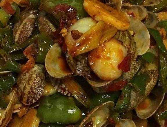 用料花椒小把;花甲两斤;大葱半根;蒜3个独蒜,瓣蒜自己看差不多量就好了;八角1个;郫县豆瓣一大勺;二荆条5根;螺丝椒2根;大青椒一根;生抽适量;味精适量;烹饪黄酒适量做法