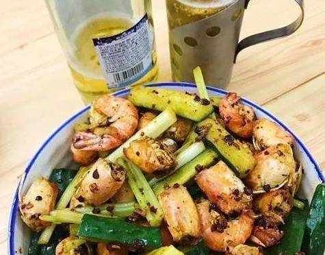 用料罗氏虾1.5斤;香辣虾调料50克;青瓜1条;芹菜3根;花椒适量;辣椒干适量做法