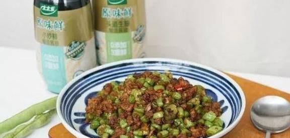 用料主料;肉末150克;豆角150克;调料;太太乐原味鲜小炒鲜1勺;太太乐原味鲜头道生抽2勺;老抽半勺;淀粉半勺;盐适量;配料;小米辣2根;蒜末2瓣;水小半碗做法