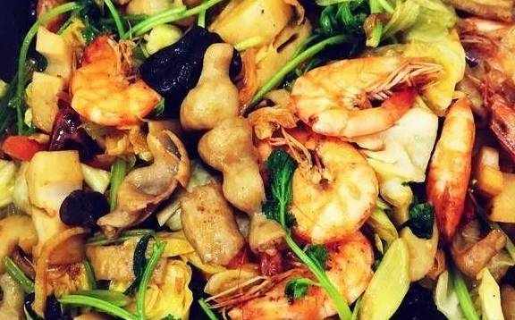 用料虾一斤;大肠两斤;芹菜3根;藕一节;胡萝卜1根;香菜半斤;大葱一根做法