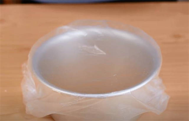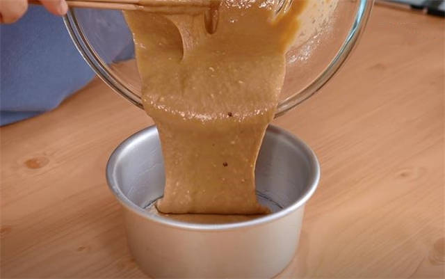 2.再准备一个6寸的模具,我们在里面刷上油防粘,然后把面糊倒进去。