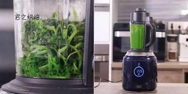 用普通的料理机或料理棒来搅打也可以,但只有破壁机的高速破壁搅拌,才可以得到非常细腻无任何颗粒感的艾草汁(用破壁机打完的艾草,做出来的面团里不会有星星点点的艾草颗粒感)。
