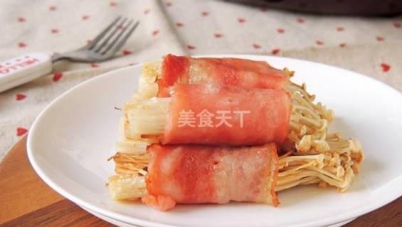 培根金针菇卷的做法步骤:4把适量的金针菇放在培根上