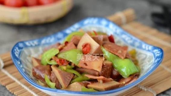 培根尖椒鸡蛋干的做法步骤:5放入鸡蛋干。