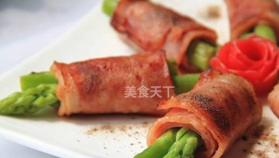 培根青笋卷的做法步骤:7最后摆盘一下就可以开吃了!