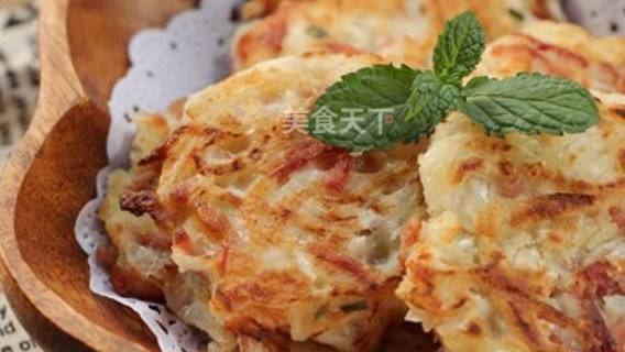 培根萝卜丝饼的做法步骤:7最后盛出放在指尖上吸油;