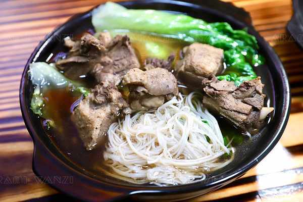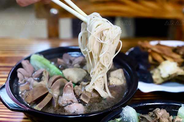 番鸭素来被群众视为补壮身体的珍品,和四物很是搭配。面线和青菜焯熟,码放上鸭肉,再浇上灵魂汤底,一份基础版的番鸭面线就做好了。