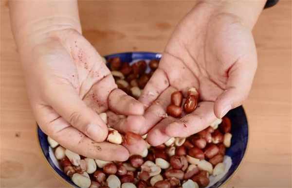 2.花生去皮的时候也很简单,只需要简单放凉轻轻一搓就开了。
