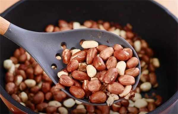 1.锅中开火,不用倒油,把花生米倒进去翻炒,最后翻炒到花生的颜色加深,而且闻起来有明显的香味时就可以出锅了。