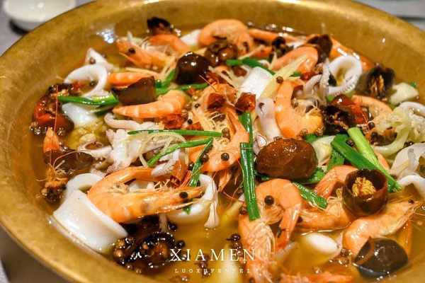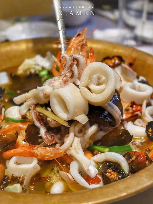 来小鱿鱼餐厅吃饭,一定不能错过他们家的招牌水煮小鱿鱼!一大盆海鲜分量很足,而且够新鲜,辣度适中,价格实惠。原本的内容已经很丰富了,包含了鱿鱼、白菜和木耳等配料,加了虾之后不仅更好看,而且更好吃!捞了一勺,满满都是料!