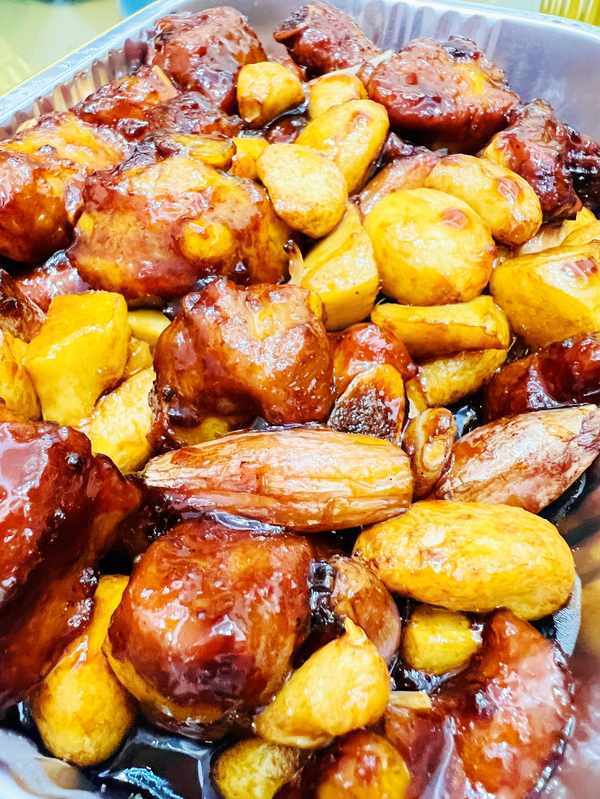 咸甜口味的排骨,浓郁的酱汁挂在排骨上,排骨肉在酱汁和蒜香中融合,味道特别棒!大人小孩都爱吃,而且我常常连续点这道,一点也吃不腻。