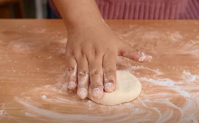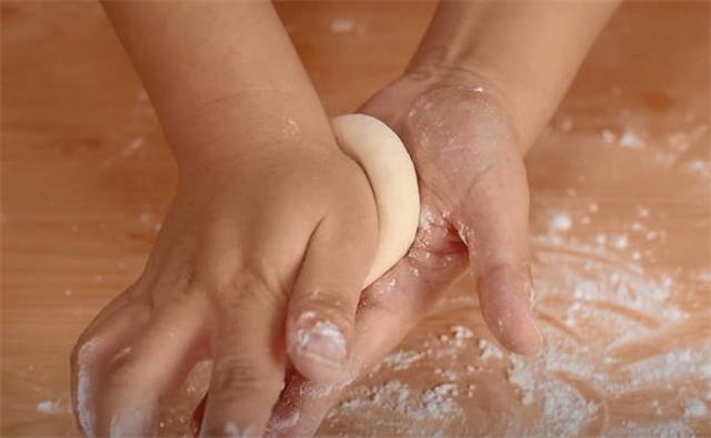 5.包好之后直接按扁,这个坯子就做好了。