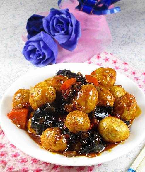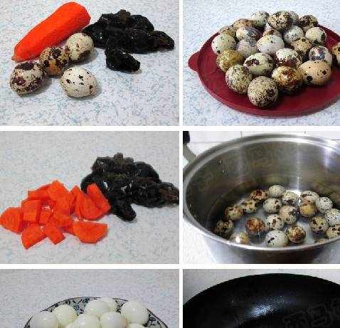 主料;鹌鹑蛋500克泡发木耳50克胡萝卜50克