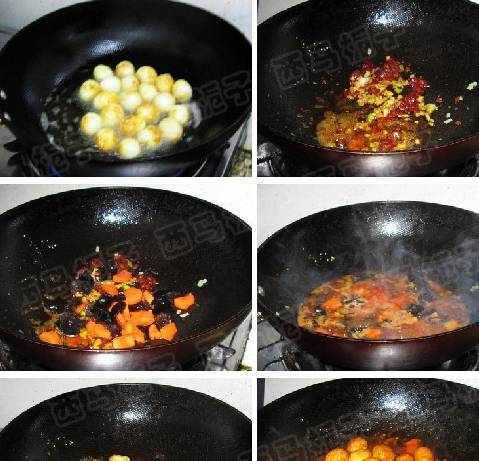 小贴士;鹌鹑蛋要擦干水分后再炸,以免烫伤。郫县辣酱和酱油都有咸味,盐要少放。