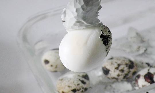 5煮熟的鹌鹑蛋剥去蛋壳后擦干水分。