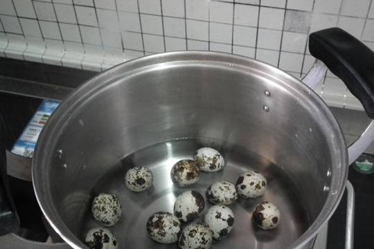将鹌鹑蛋冲洗干净放入锅中煮熟。