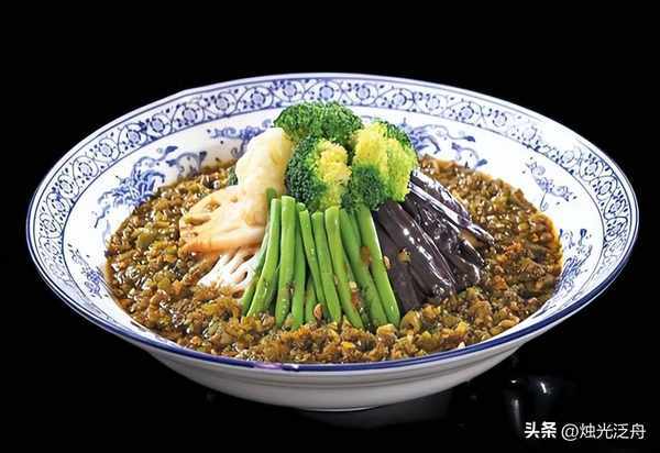 2、出菜时,依次将花菜、西兰花、藕片、豇豆节、木耳和茄条摆入盘中,舀入用自制烧椒酱、生抽、辣鲜露、蚝油、醋和生菜油调制的烧椒味汁,即可。