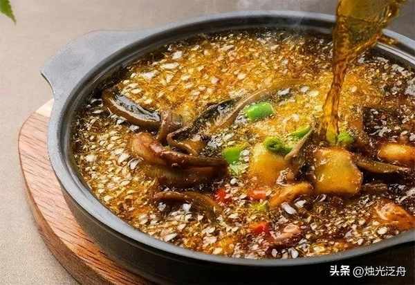 此菜选用本地的土鳝鱼,用高温石锅烹煮而成。香料味包裹住细嫩的土鳝鱼,口感浓郁鲜香,麻辣鲜香烫突出。