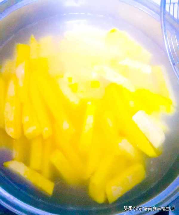 做法:1、红薯洗净去皮去蒂,切成一厘米厚的片,再切成一厘米宽的条,我觉得我切的有点厚,切好后,倒入开水锅中煮开捞出,放入凉水中过凉,捞出控水后放入盆中。
