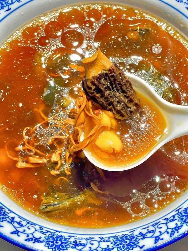 没啥胃口的宝子可以试试羊肚菌虫草花炖鸡汤,羊肚菌有消食和胃、化痰理气的作用,它也能让汤变得更鲜美。